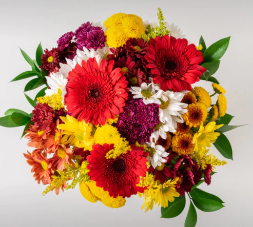 Esse buquê tamanho grande é confeccionado com flores do campo coloridas, as quais podem ser gerberas, crisântemos, margaridas, entre outros. Acompanhado por uma caixa de chocolates, ele é o presente perfeito para dar a uma pessoa especial.