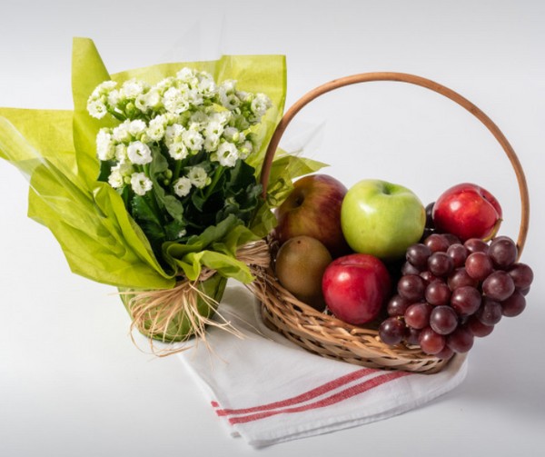 Cesta Pequena de Frutas e Flores